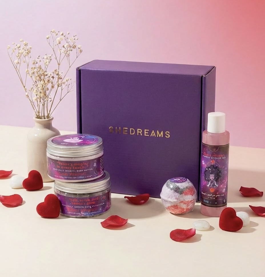Plongez dans un monde de tendresse et de douceur avec la Box Venus Whispers, un cocon de bien-être conçu pour sublimer chaque moment de votre quotidien. Offrez-vous ou offrez à une âme chère un instant d’évasion, où la féminité et l’amour de soi se mêlent délicatement à chaque geste.