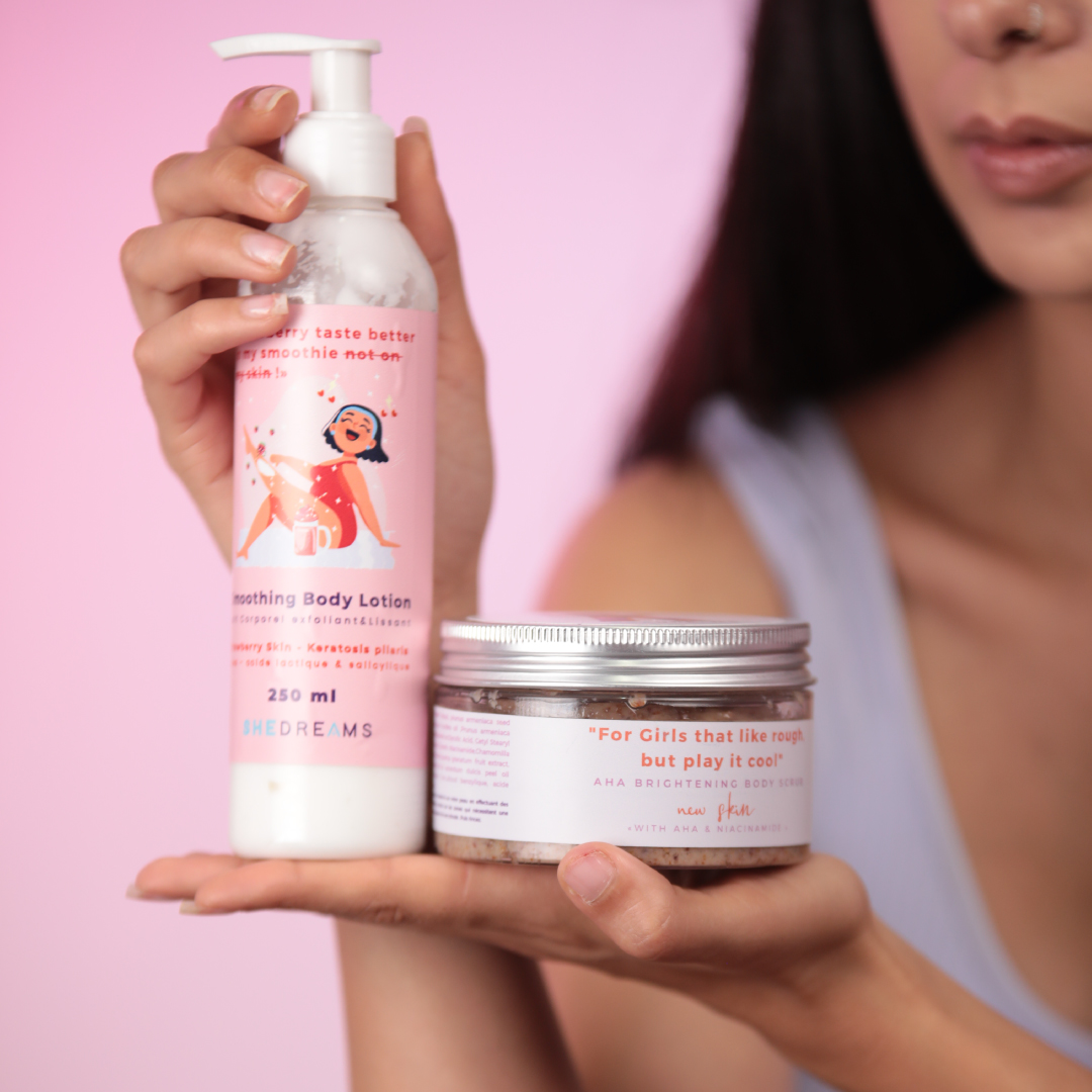 Dites adieu aux imperfections de la peau avec notre routine spécialement formulée pour la kératose pilaire et les traces laissées par les boutons. Chaque étape est conçue pour exfolier en douceur, hydrater et améliorer visiblement la texture de votre peau.